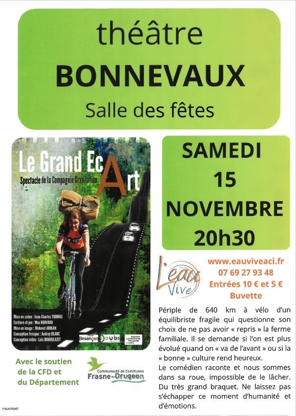 Venez découvrir le spectacle "Le Grand Ecart" de la Compagnie Gravitation Art : périple de 640km à vélo d'un équilibriste fragile qui questionne son choix de ne pas avoir "repris" la ferme familiale. Il se demande si l'on est plus évolué quand on "va de l'avant" ou si la "bonne" culture rend heureux.