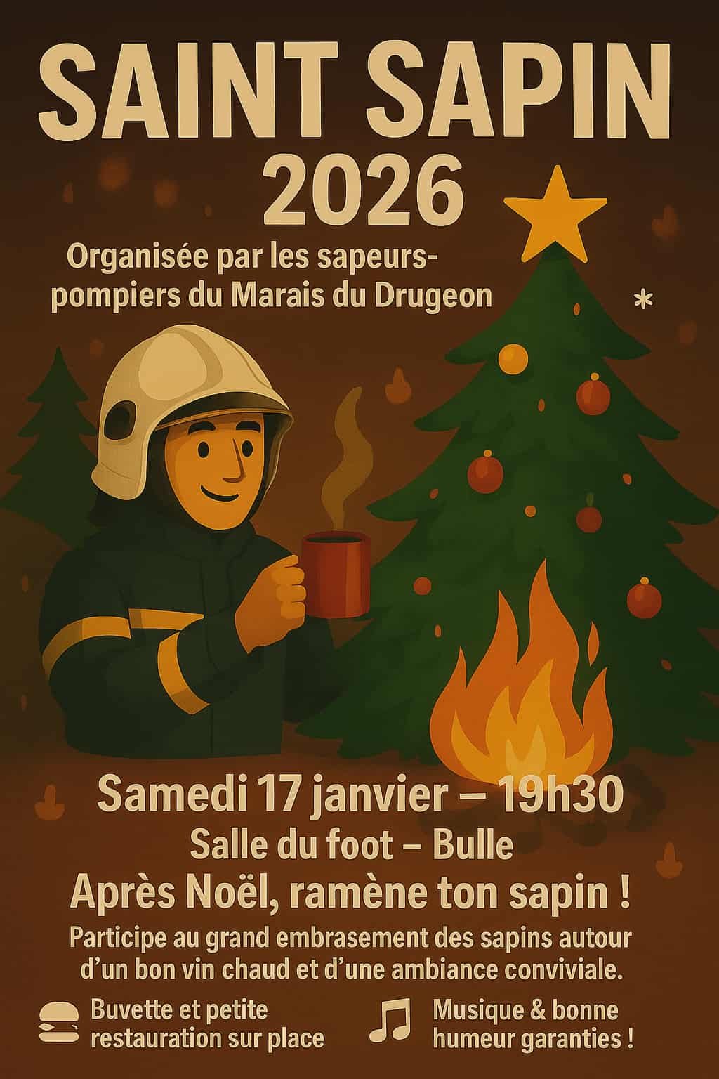 PARTICIPE AU GRAND EMBRASEMENT DES SAPINS AUTOUR D'UN BON VIN CHAUD ET D'UNE AMBIANCE CONVIVIALE