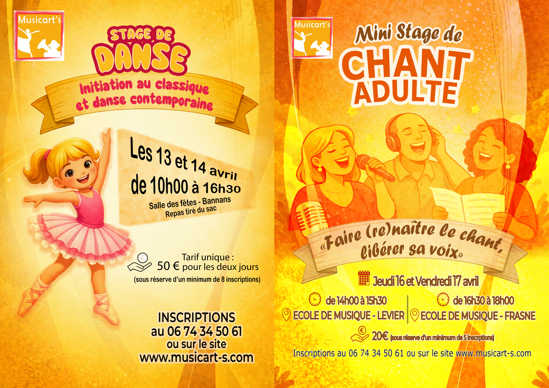 Inscriptions obligatoires :06 74 34 50 61 ou sur le site : www.musicart-s.com