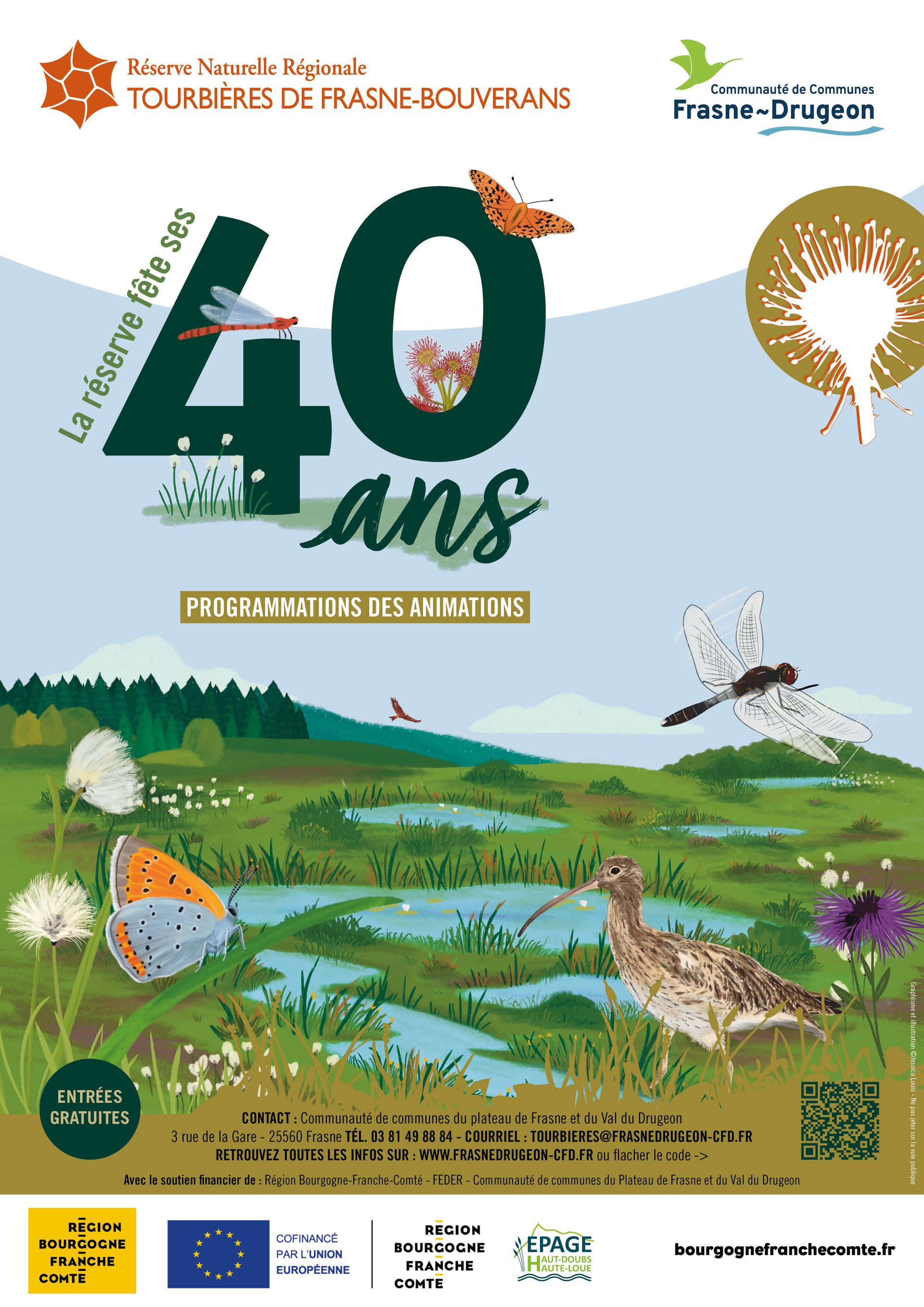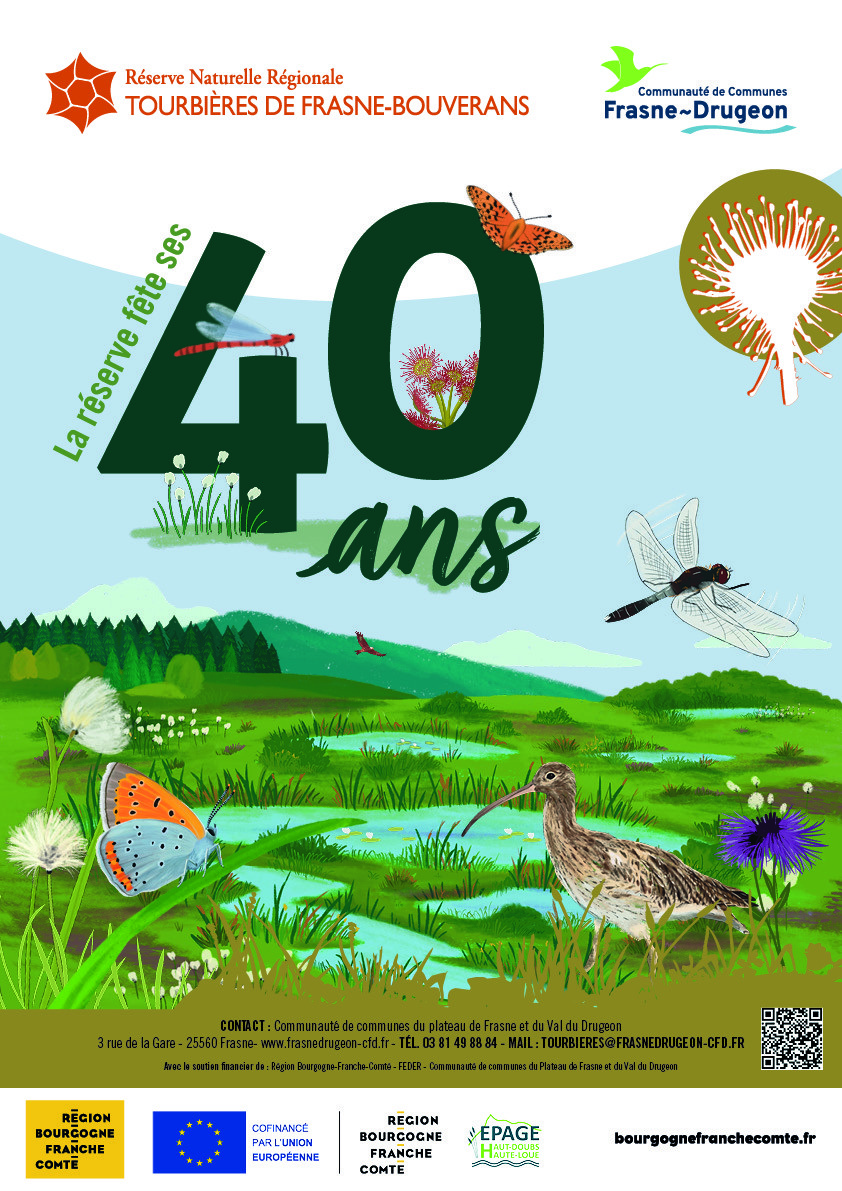 L’organisation des 40 ans de la réserve est co-financée par la Région Bourgogne-Franche-Comté, les Fonds européens (FEDER) et la Communauté de communes Frasne-Drugeon.